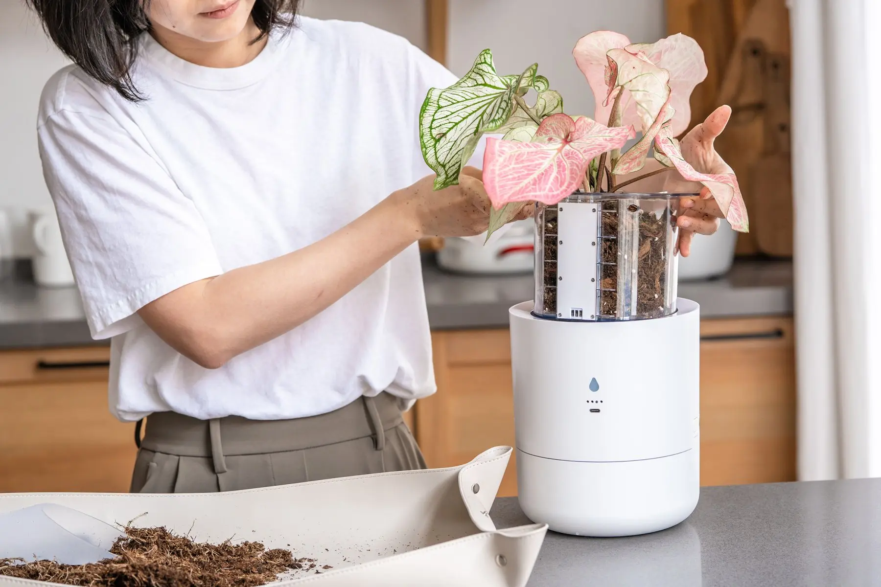 The circular "sprinkle and drain" mechanism is clever. Water distributes from the top, mimicking natural rainfall, then excess drains back into the reservoir through a multilayer filter system. This prevents the soggy-bottom-soil problem that kills more plants than underwatering. After a few weeks, the soil stays consistently moist but never waterlogged—you can feel the difference when you touch it.