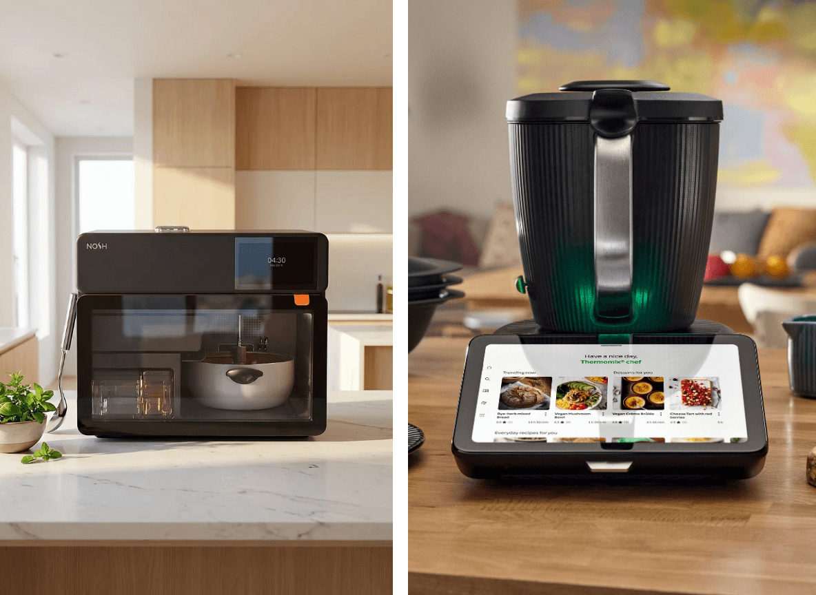 While the Thermomix offers more cooking modes and broader versatility, we agree with the sentiment shared by CNET: Thermomix can't automatically deliver precise ingredient amounts to the chamber. In a Thermomix, you are still the dispenser, following prompts on a screen. In the Nosh, the machine handles the timing and the drop.